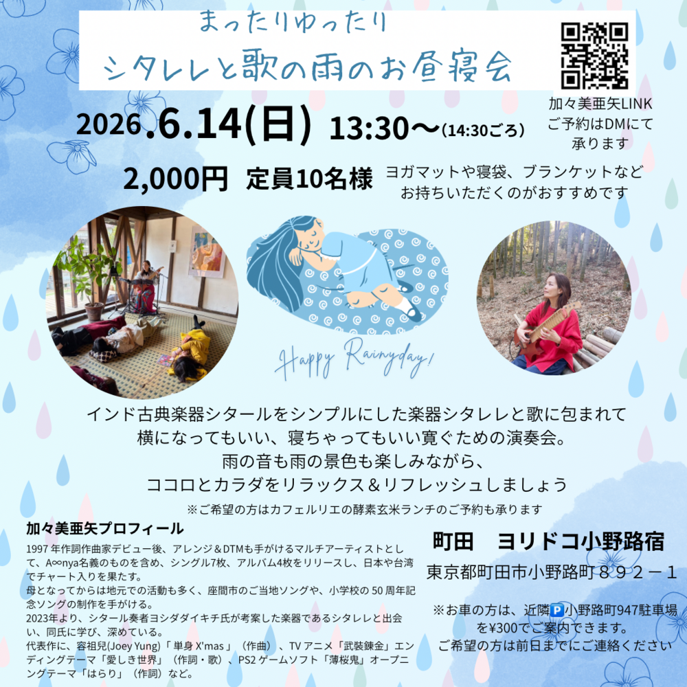 2026.6.14(日) 雨のお昼寝会 町田ヨリドコ小野路宿にて開催